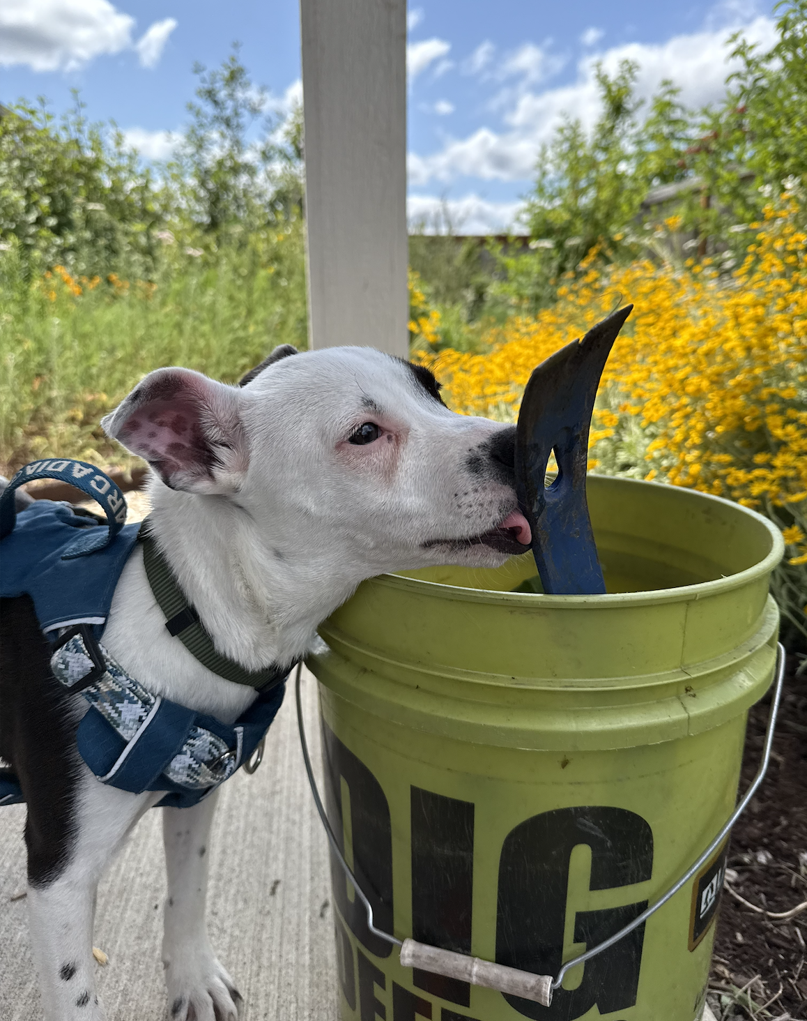 Using her skills in digging, herding and tool maintenance, Juniper brings her unique ability to spot dead plants and offer the crew moral support during the tough projects. She ensures the crew is always working as hard as they can and helps maintain an orderly jobsite.